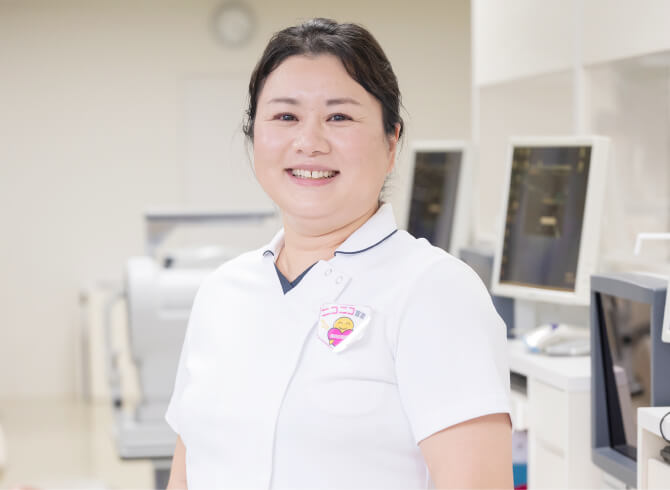 入職して間もない頃、検査に時間を取られている私に「こんなに時間がかかるなら、検査で眼が悪くなるわ!」と患者さまに言われたことを今も鮮明に覚えています。あの出来事をきっかけに、仕事への意識が大きく変わり、常に患者さまの負担を減らすよう心掛けています。入職して10年を過ぎ、まだ力不足ではありますが、患者さま、先生、周りのスタッフに目配り・気配り・心配りができるようになってきたように思います。